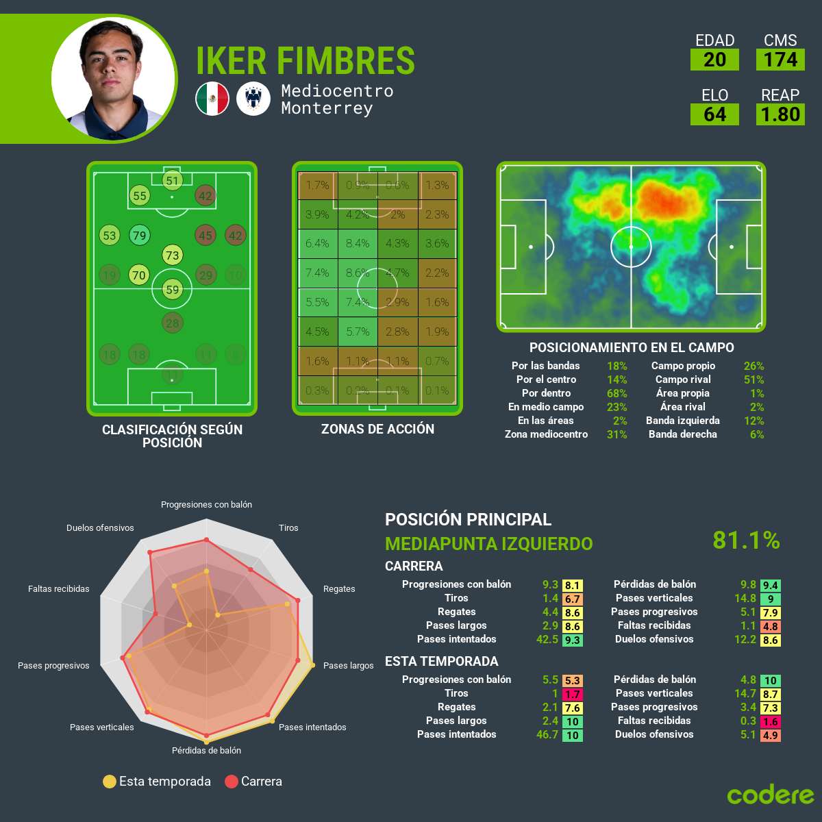 El oriundo de Hermosillo, Sonora, a sus 20 años pertenece a los Rayados de Monterrey, club con el cual ha obtenido minutos interesantes gracias a su recuperación de balón y buen toque en la media cancha.